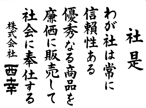 「信頼性ある優秀な商品を廉価に販売して地域社会に貢献する」を経営理念に、人々の暮らしの改善に向けて事業を営んでまいりました。